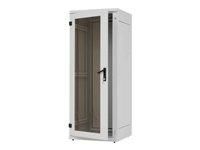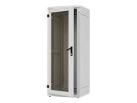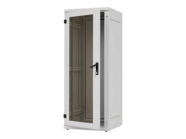 Vormontiert, 4xLochrasterprofil, H1300xB800xT1000mm, 97,1Kg, Rück-und Seitenteil abnehmbar, 2xÖffnungen für Kabeleingang, Stahlblechgehäuse, 16xMontagesätze M6, RAL7035 Lichtgrau, 4xNivellierfüße, Glastüre mit Schloss,