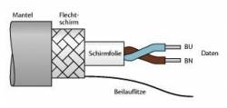 Feldbusleitung für Feldbussysteme, nach IEC61158-2, Long?Distance?Feldbusleitung, Typ A nach IEC 61158?2, PVC?Außenmantel, Farbe schwarz, Öl?, Gas? und Sonnenlichtbeständig, Temperaturbereich ?40 ? +75 °C, Kabelquerschnitt: 14/7AWG (2.1 mm2), Leitungslänge: 500 Meter