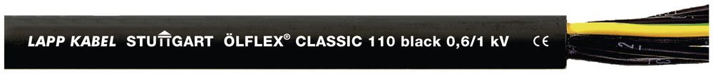 Steuerleitung ÖLFLEX® CLASSIC 110 Black 0,6/1kV 3G2,5 500 M, Steuerleitung, 3G2.5, U0/U: 0,6/1 kV, PVC, Aderidentifizierung: Nummern, flexibel, Anwendungsgebiete: Für mittlere mechanische Beanspruchung geeignet,Für Stromkreise, die aufgrund der Installation eine höhere Nennspannung benötigen,Zur festen Verlegung und gelegentlichen Bewegung ohne Zugbeanspruchung,Einsetzbar in trockenen und feuchten Räumen,Universell einsetzbar zur Verdrahtung von maschineninternen und anlagenübergreifenden Steuerkreisen,Für den Außenbereich geeignet, unter Beachtung des Temperaturbereichs,PVC-Außenmantel ist beständig gegenüber Säuren und Laugen und bedingt ölbeständig,Leitungsaufbau auch für Torsionsanwendungen in Windkraftanlagen geeignet, Nutzen: Klassifiziertes Brandverhalten gemäß EU-Richtlinie 305/2011 (BauPVO/CPR) mit Artikelnummer-Auswahl auf der LAPP-Website,Hohe elektrische Sicherheit durch 4000V-Prüfspannung,Witterungsbeständig und daher gut für den Außeneinsatz geeignet,Sehr robust durch verstärkten Außenmantel mit mind 1,8 mm Wanddicke