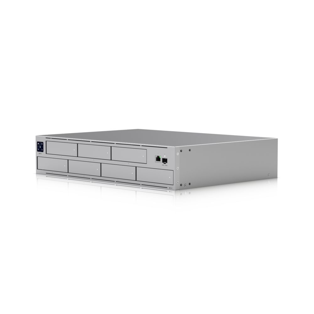 UniFi Protect Network Video Recorder Pro integriert UniFi® Protect in einen skalierbaren NetworkVideoRecorder mit 7 Laufwerken. Es unterstützt bis zu (7) SSD / HDDs in RAID 1- oder RAID 5-Konfiguration für zuverlässigen und sorgenfreien Videospeicher.
