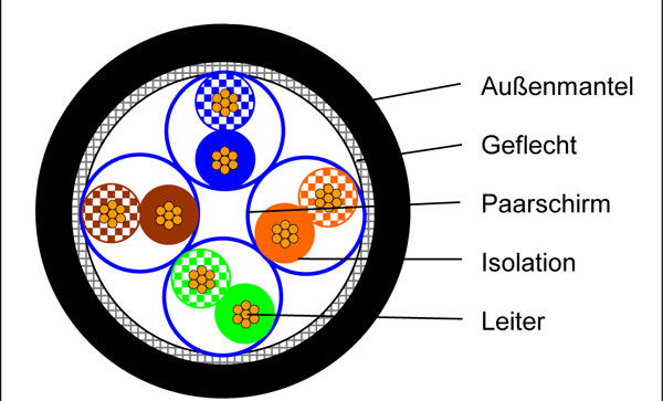 VOKA-LAN XLAN flex 1000 S/FTP 4PR AWG 26/7, PUR Adernpaare Folien-/Gesamt-schirm geflecht, Halogenfrei, Flexible 8-pol.Außendurchmesser 6,1mm, AWG26,(CU-geflecht mit Beidraht),