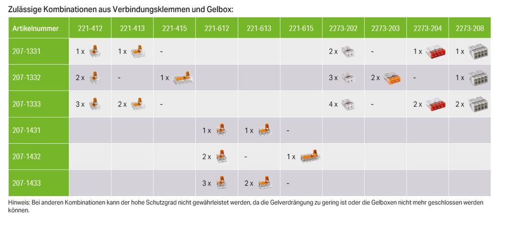 Passendes Zubehör für Wago Gelbox Serie 221, 2x73 max. 4mm²-Klemmen Größe 1 (4Stück) IP68