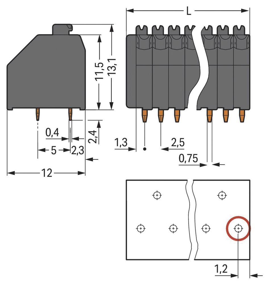 WAGO 250-408/353-604 THR-Leiterplattenklemme,Drücker,0,5 mm²,Rastermaß 2,5 mm