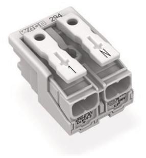 WAGO 294-4052 Netzanschlussklemme ohne PE-Kontakt ohne Rastfüße 1-N 2p weiß