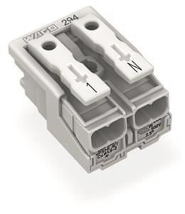 WAGO 294-5052 Netzanschlussklemme ohne PE-Kontakt mit Rastfüßen 1-N 2p weiß