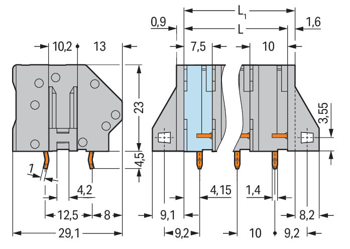 WAGO 745-1354/000-009/999-950 Leiterplattenklemme,6 mm²,Rastermaß 10 mm