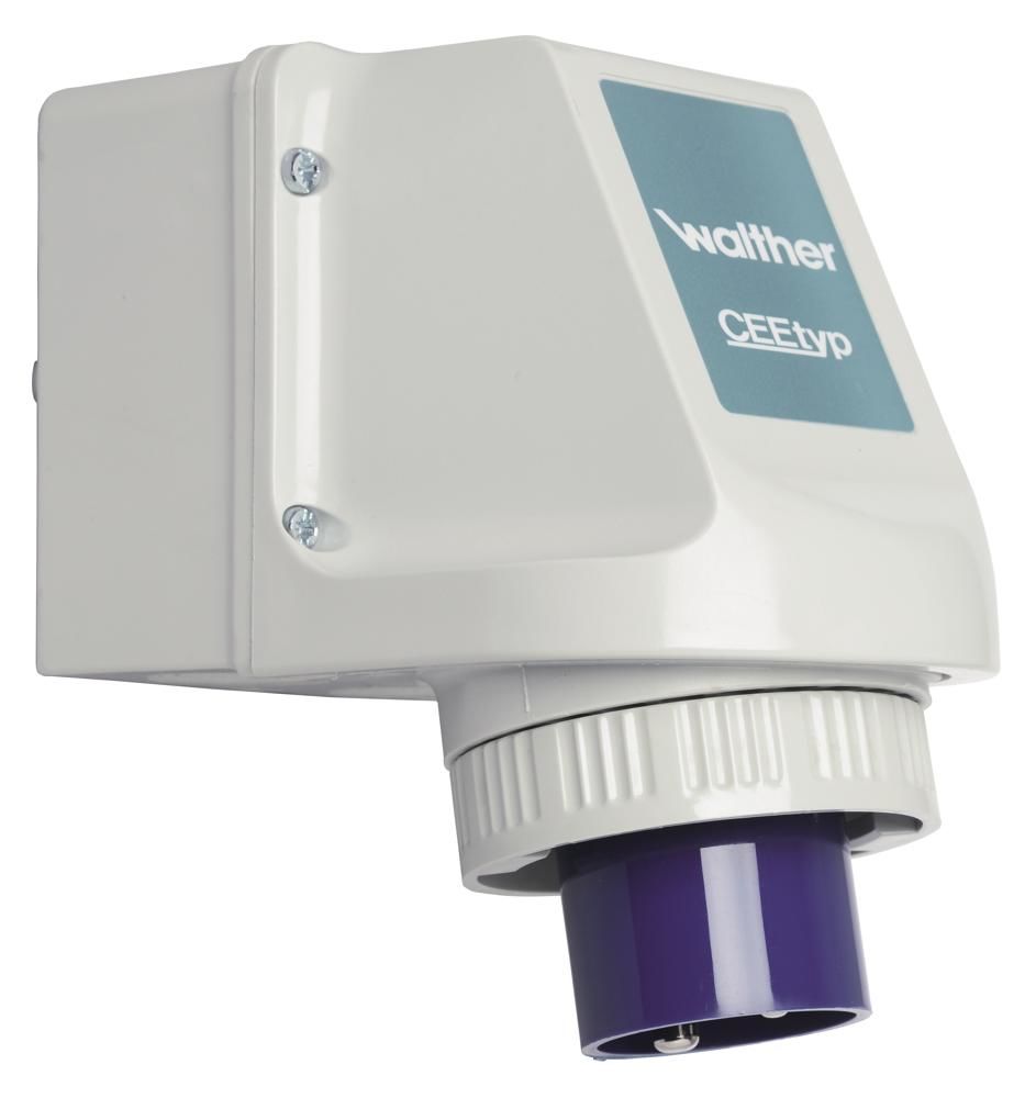 Walther-Werke 618306 Walther Wandgerätestecker 16A 3P 230V 6h IP67 Innenbef. Kabeleinf.2 oben