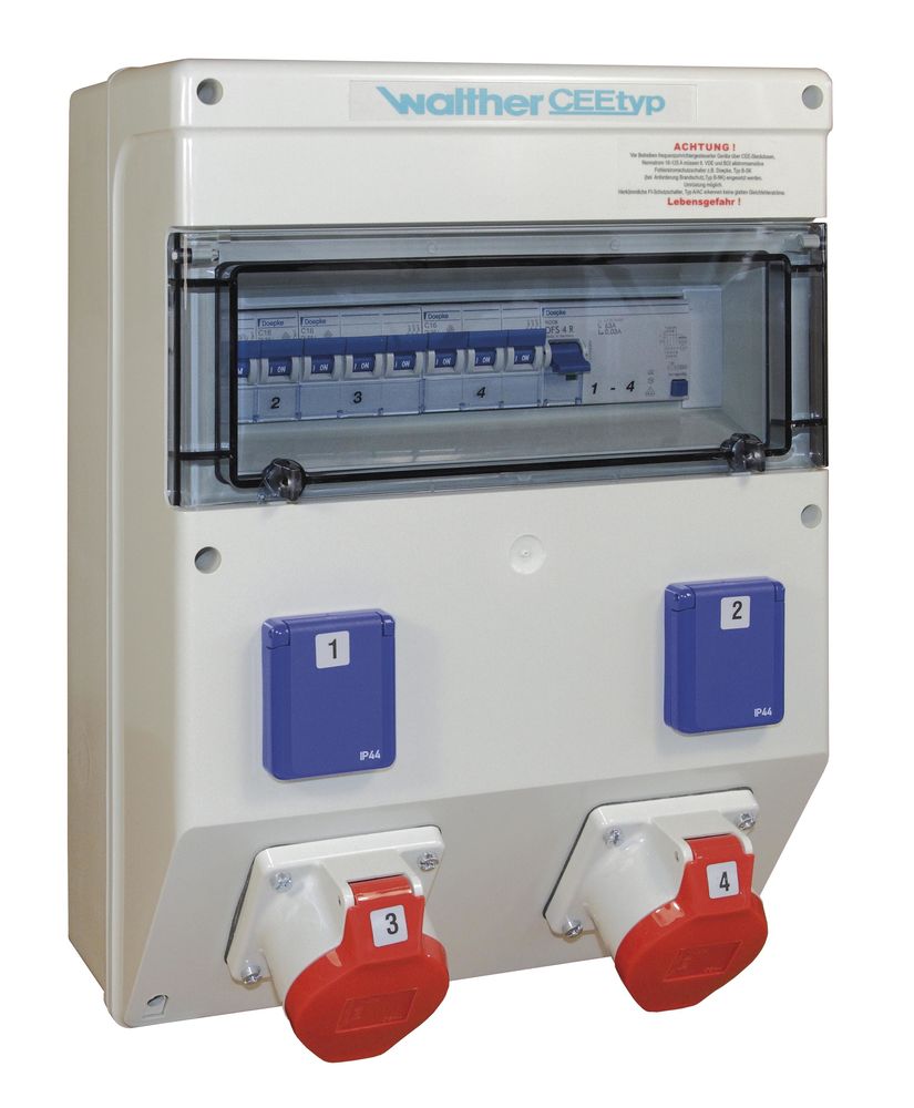 Walther-Werke 6820207 Walther Kunstst.Kombi 40A RCD-A 4MCB-C und -B,2CEE Abg.2Schuko Klemms.K25