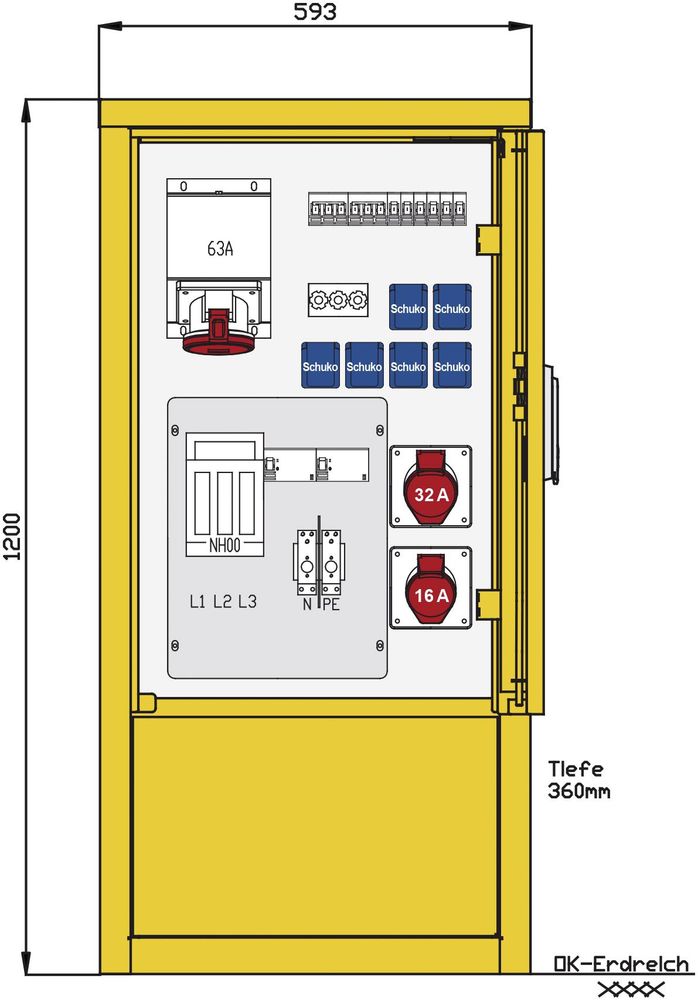 1 CEE-Anbaudose 63A 5P 400V 6h