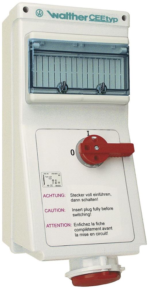 Walther-Werke AL160TS Walther Wandsteckdose 63A 5P 400V 6h IP44 Ausschalter 4p Tragschiene