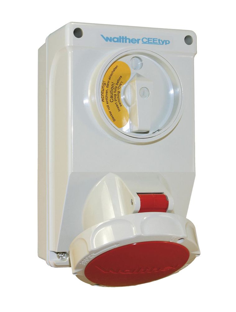 Walther-Werke AT119406 Walther Wandsteckdose 16A 4P 400V 6h IP67 Ausschalter 3p mit Verrieg.