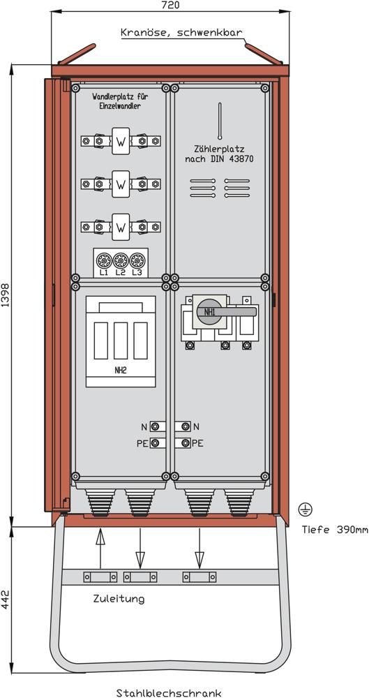 Walther-Werke WA0031 Walther Anschlussschrank 173kVA 1-Abgang 1-Zählerplatz 1-Wandlerplatz