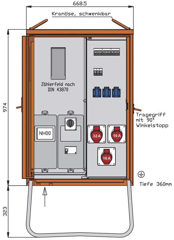 1 DS-Zählerplatz ohne Zähler nach DIN 43870/2Abgang / Absicherung: