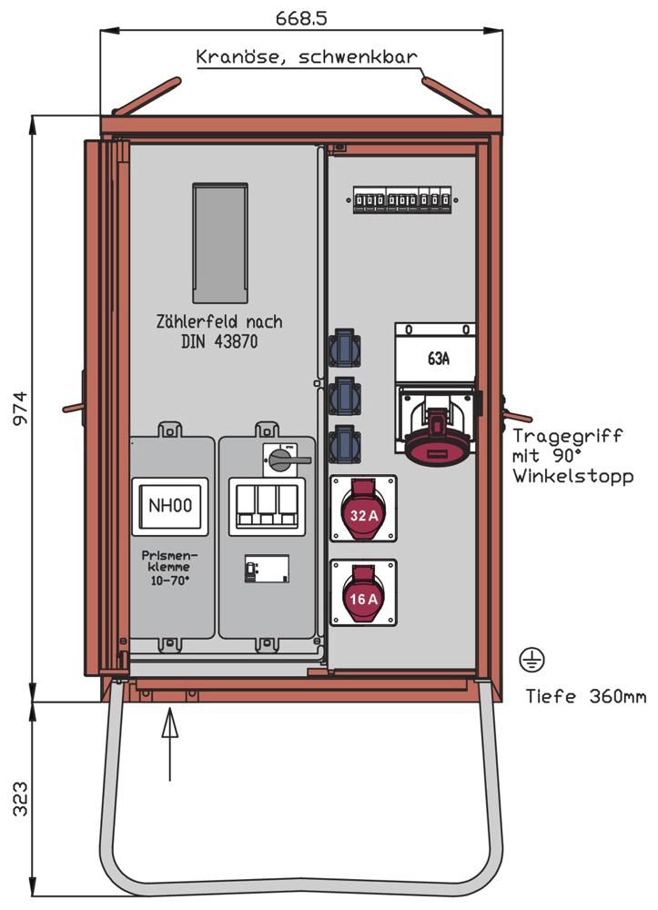 Walther-Werke WAV0160BR1 Walther Anschl.vert.schrank 44kVA Zählerpl.RCD Typ B 5 LS 3 CEE-Abg
