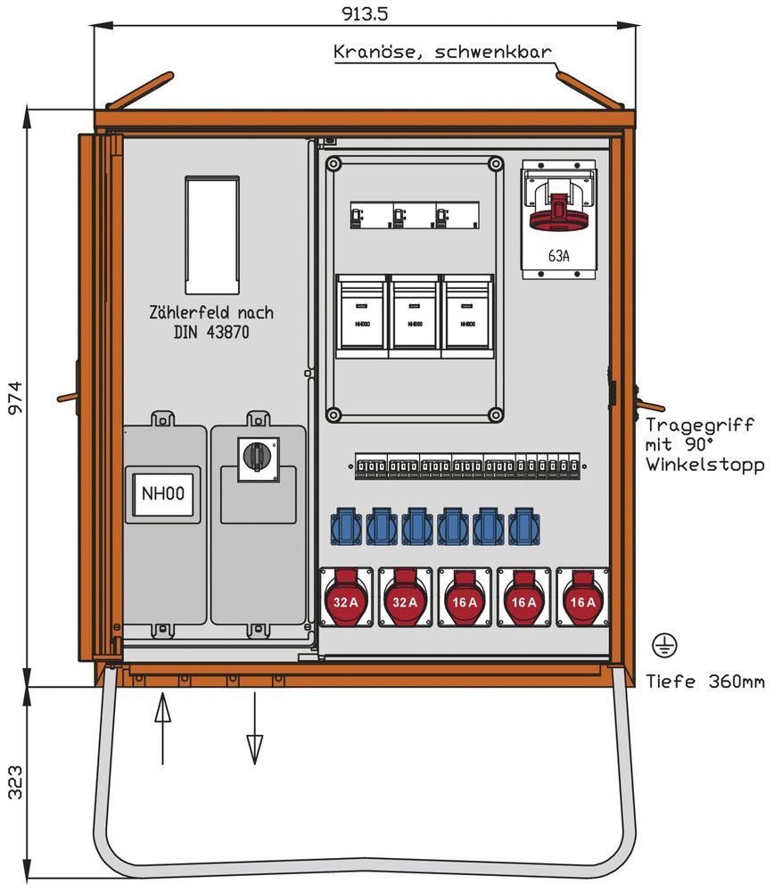 1 DS-Zählerplatz ohne Zähler nach DIN 43870/2Abgang / Absicherung: