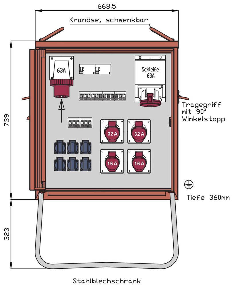 Walther-Werke WEV0801R1 Walther Endverteiler 44kVA Anbaugerätestecker 63A RCD Typ B RCD Typ