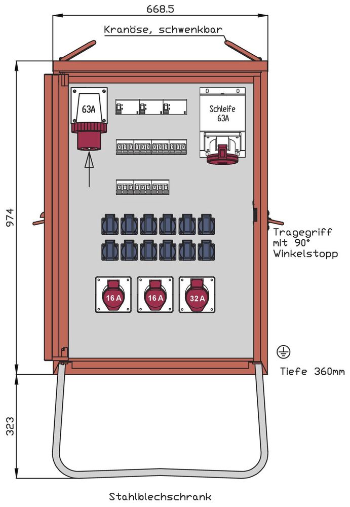 Walther-Werke WEV0803R1 Walther Endverteiler 44kVA Anbaugerätestecker 63A RCD Typ B 2 RCDs