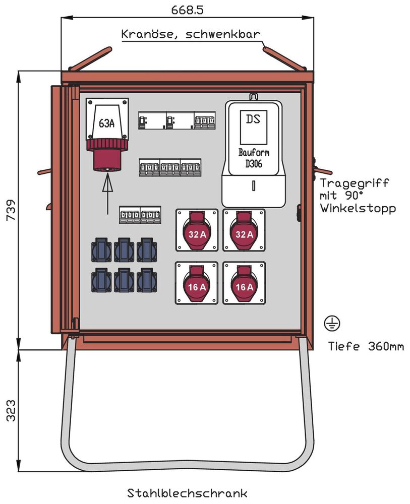 Walther-Werke WEV0821R1 Walther Endverteiler 44kVA Anbaugerätestecker 63A DS-Zähler RCD Typ