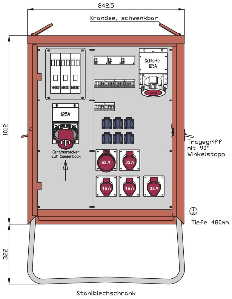 mit NH000-Sicherungslasttrennschalter 63A