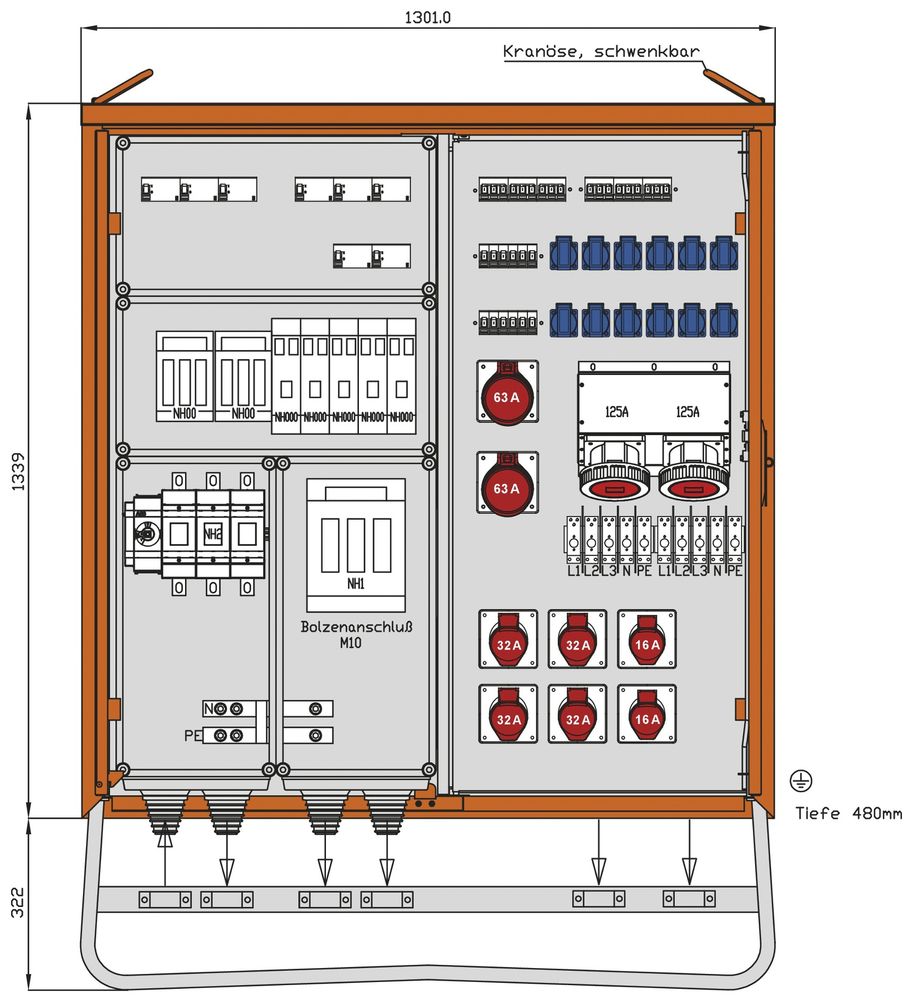 mit je 1 NH000-Sicherungslasttrennschalter 63A
